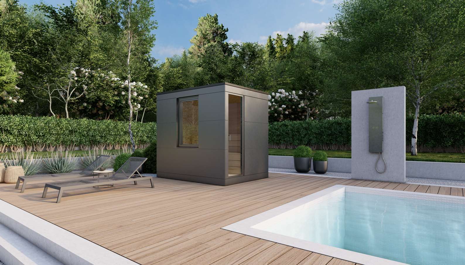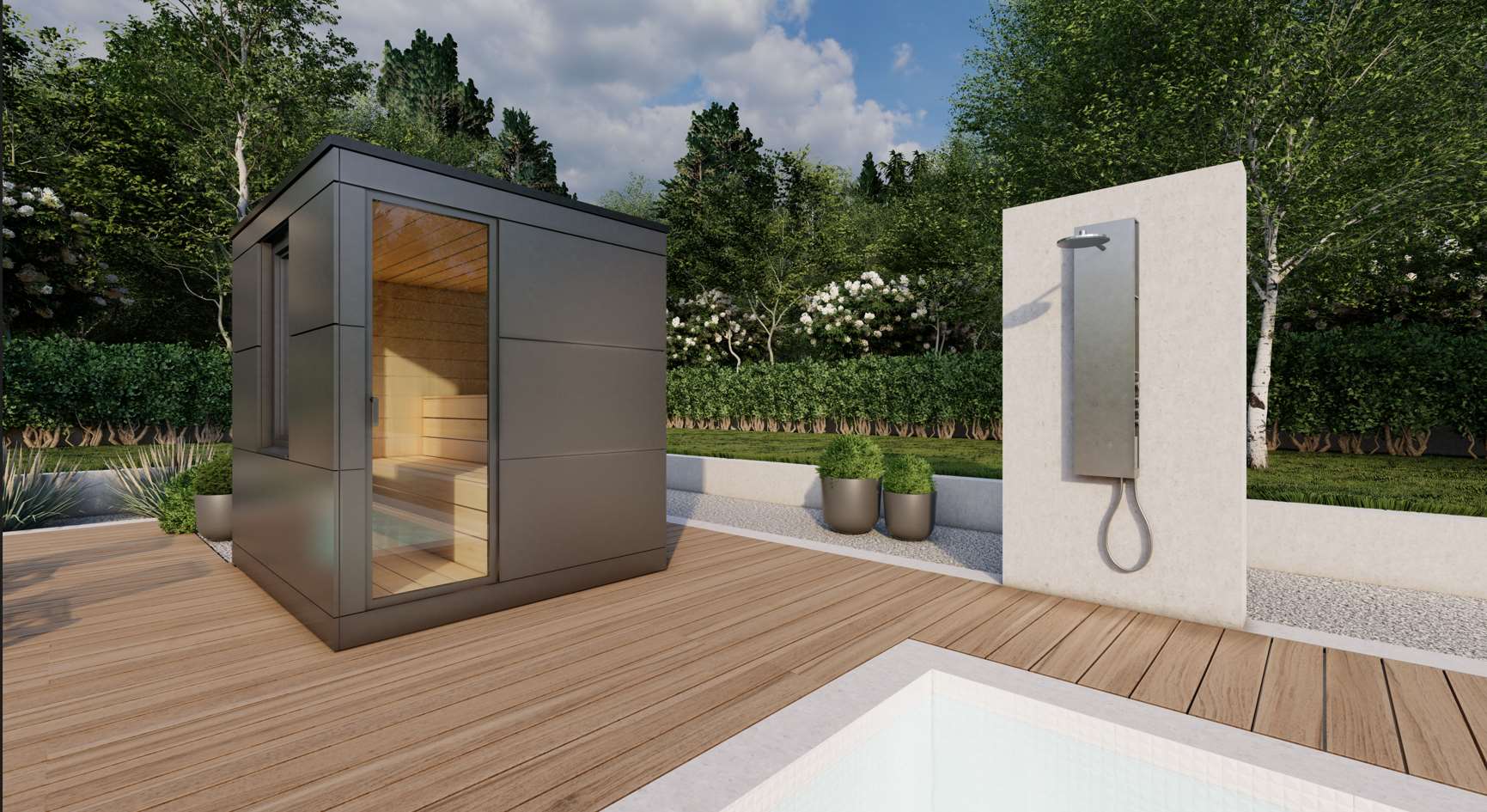 Erleben Sie pure Exklusivität mit unserer Sauna OPTIMA. Die Kombination aus ESG Isolierglas, HPL-Anthrazit-Verkleidung und der eleganten Aluminiumtür mit Zylinder-Schloss verleiht der Sauna einen modernen Charme. Im Inneren sorgen Fliesen-Anthrazit, Fichte-Softline oder Espe Hell sowie Thermo Espe für höchsten Komfort. Das LED-Farblicht schafft eine stimmungsvolle Atmosphäre. Optional erhältlich sind Infrarotstrahler, ein BIO Kombi Saunaofen, Soundsystem und verschiedene Innenwandoptionen, um Ihr persönliches Wellnesserlebnis zu perfektionieren.